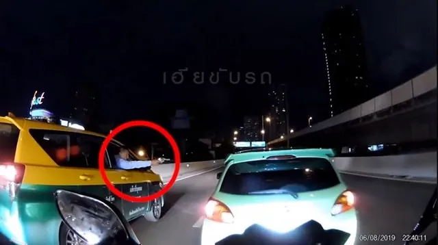 โดยภายในคลิปวิดีโอเผยให้เห็นรถแท็กซี่ขนาดใหญ่ ขับตีคู่มากับรถยนต์ มิตซูบิชิ มิราจ สีขาว บนสะพานตากสินมุ่งหน้าถนนสาทร ซึ่งทั้ง 2 คันต่างขับแบบชะลอความเร็วคล้ายมีปัญหากันมาก่อน เนื่องจากเบื้องหน้าของรถทั้ง 2 คัน ถนนค่อนข้างโล่ง จากนั้นคนขับรถแท็กซี่ได้เปิดกระจกและหยิบปืนขึ้นมาเล็งเข้าไปหาคู่กรณี ทำให้คู่กรณีต้องเร่งเครื่องหนีไปโดยเร็ว