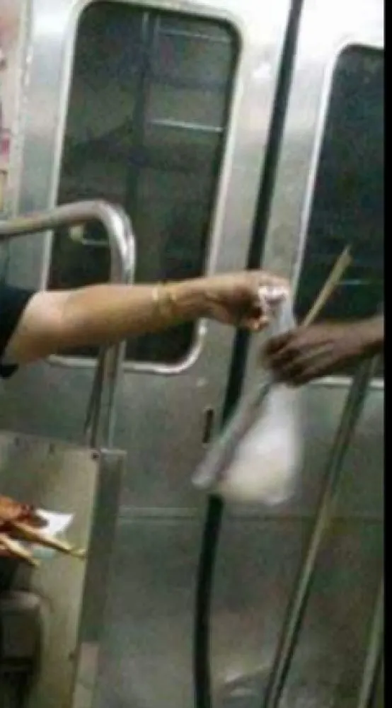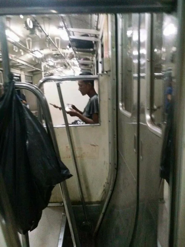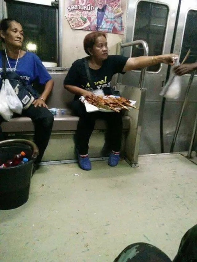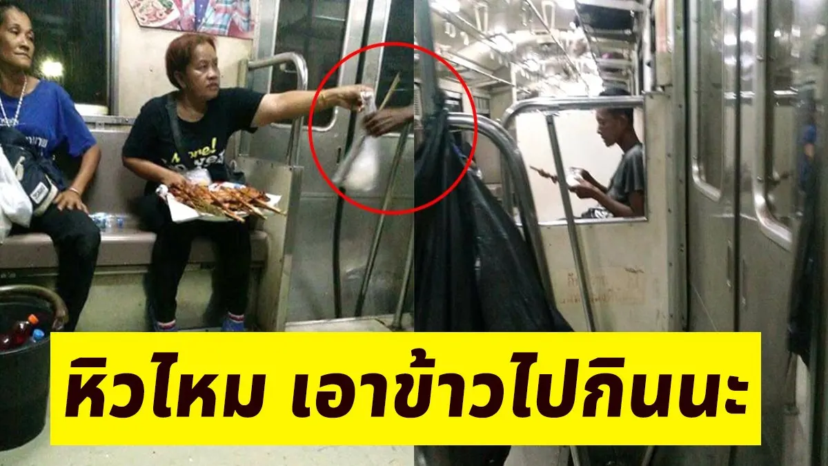 แม่ค้าเดินขายไก่ปิ้งบนรถไฟ ขณะเดินขายเห็นชายคนหนึ่งนั่งมอง หยิบข้าวให้บอกเอาไปกินนะ
