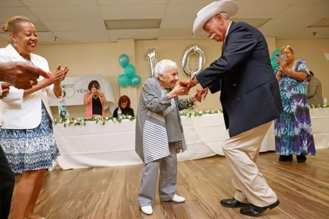 คุณยาย Jean Louise Signore มีแขกมากกว่า 100 คนเข้ามาร่วมฉลองในงานฉลองวันเกิดของเธอ ในระหว่างการฉลองวันเกิดที่ Bartow Community Center มีผู้อาวุโสที่ยิ้มแย้มแจ่มใส คนส่วนใหญ่ดูอ่อนเยาว์และมีความสุขจริงๆ