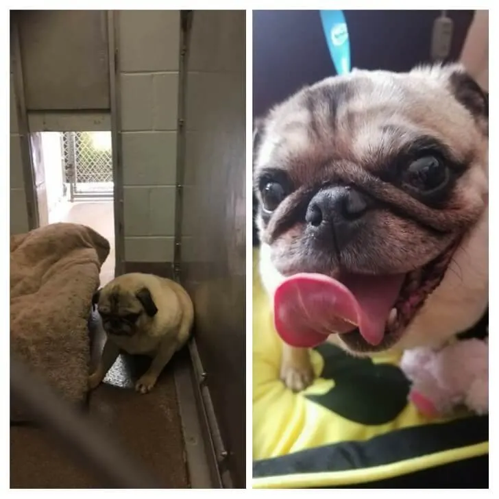 4.ภาพสุนัขตัวหนึ่งก่อนและหลังจากถูกรับไปเลี้ยง