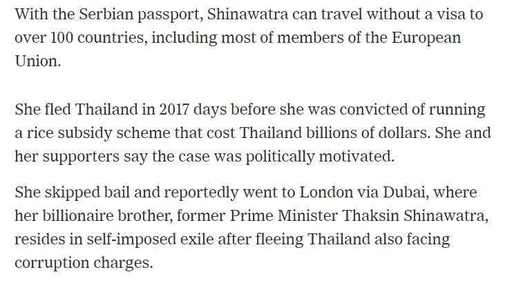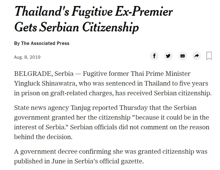 ยิ่งลักษณ์ เผยเหตุที่ รัฐบาลเซอร์เบีย มอบสัญชาติให้