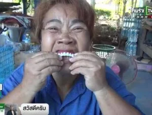 ชาวบ้านสูงวัยรายหนึ่ง ที่ อ.บ้านค่าย ระยอง ซึ่งมีอาชีพชาวสวนปลูกต้นไม้ เลี้ยงไก่ ได้สั่งซื้อฟันปลอมทาง