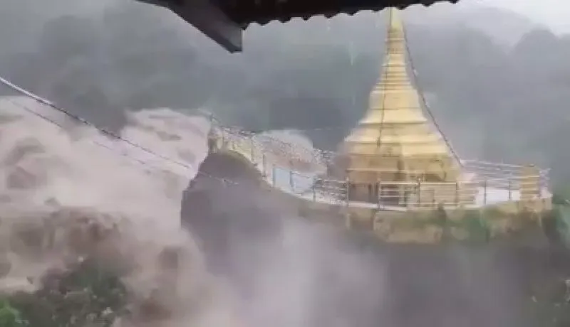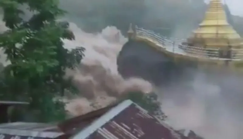 วันนี้ (10 สิงหาคม 2562) ผู้สื่อข่าวรายงานว่า ได้เกิดเหตุน้ำป่าพัดถล่มวัด เจดีย์ทอง ที่บ้านเซผิ่วโกง ตำบลเซนไจ้ เมืองเมาะตะมะ รัฐมอญ ประเทศสาธารณรัฐสหภาพเมียนมา กำลังถูกกระแสน้ำจากภูเขาไหลลงมาแรงมากซัดไปทางเจดีย์ทองอยู่บนเชิงเขา ใกล้วัดในหมู่บ้าน ทำให้พระชาวเมียนมาเชื้อสายมอญ และชาวบ้านต่างไปยืนดู และภาวนาขอไม่ให้เจดีย์ทองถล่มลงมา