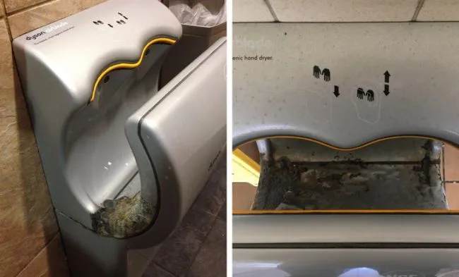 ดังนั้นคุณอาจต้องการทราบว่ามีโอกาสไม่มากเท่าไรที่จะเกิดโรคที่อันตราย เมื่อใช้เครื่องเป่ามือ แต่ถ้าคุณต้องการให้ปลอดภัยกว่าคือใช้กระดาษเช็ดมือ ดูเหมือนว่าจะเป็นวิธีที่ถูกสุขอนามัยมากกว่าในการทำให้มือของเราแห้งตามรายงานนี้และนี่ก็เป็นอีกเหตุผลหนึ่ง ที่ควรพิจารณาใช้กระดาษเช็ดมือ ดูเหมือนว่าเครื่องเป่ามือเหล่านี้(ตามภาพข้างล่าง)ไม่เคยทำความสะอาดเลย เห็นแล้วสยองไหมหละ
