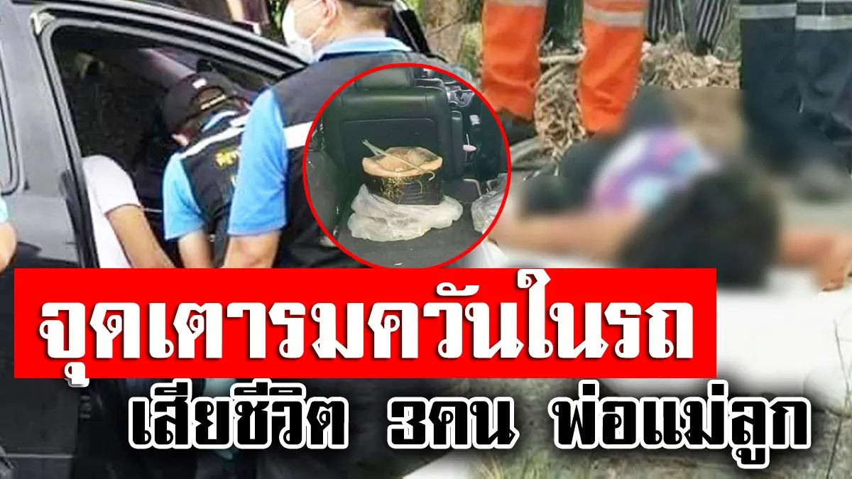 เกิดเหตุสุดสลด พ่อแม่ลูก จุดเตาอั่งโล่จอดรถ รมควันเสียชีวิตภายในรถ 3 ศพ ย่านลำลูกกา จ. ปทุมธานี