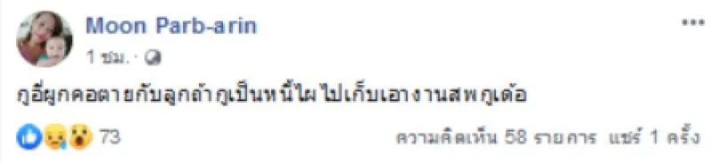 เรียกได้ว่าเป็นคลิปสุดสะเทือนใจที่ทำเอาใครหลายคนต่างเข้ามาวิพากษ์์วิจารณ์กับคลิปที่เกิดขึ้นเป็นอย่างมาก โดยในคลิปจะเห็นได้ว่าแม่แท้ๆพยายามใช้เข็มขัดรัดคอลูกน้อยของตัวเอง เพื่อหนีเจ้าหนี้ และจะผูกคอตาม โดยได้ระบุข้อความว่า ตอนนี้เอาเข็มขัดรัดคอลูกให้ตายต่อไปแม่ผูกคอตายลาก่อนเจ้าหนี้เก็บเงินงานศพนะ