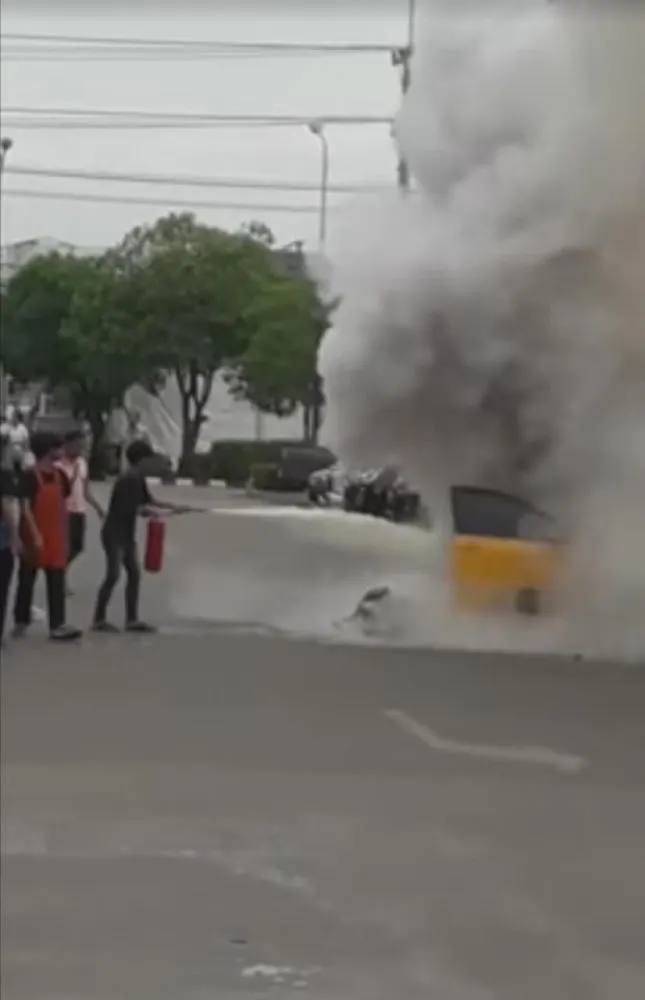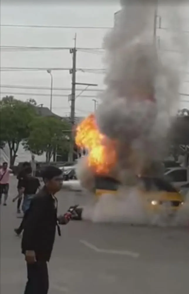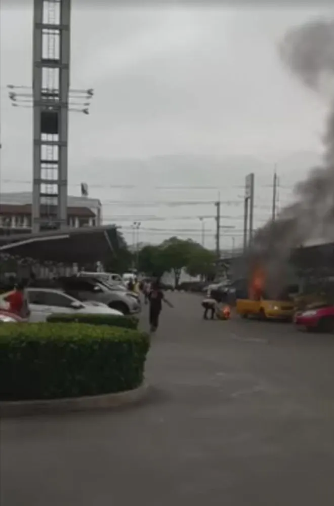 ตัวผู้ขับรถคันดังกล่าวถูกไฟคลอก ตะเกียกตะกายออกมาขอความช่วยเหลือนอกรถ ในขณะที่รถคันที่อยู่ใกล้เคียง และผู้คนพากันหนีตายกันอย่างอลหม่าน มีเจ้าหน้าที่จากทางห้างและพลเมืองดีพยายามจะช่วยเหลือดับไฟ ที่กำลังลุกไหม้เสื้อผ้าผู้บาดเจ็บ
