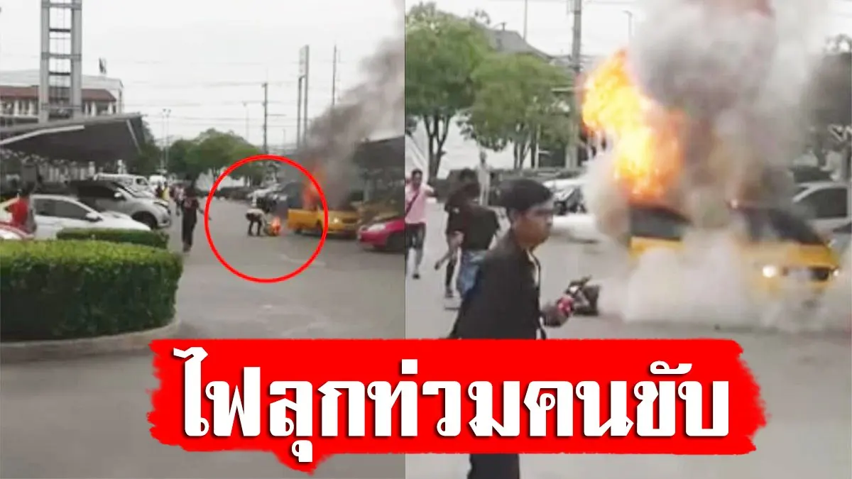 เก๋งไฟไหม้ คนขับ ตะเกียกตะกาย ออกมาขอความช่วยเหลือนอกรถ