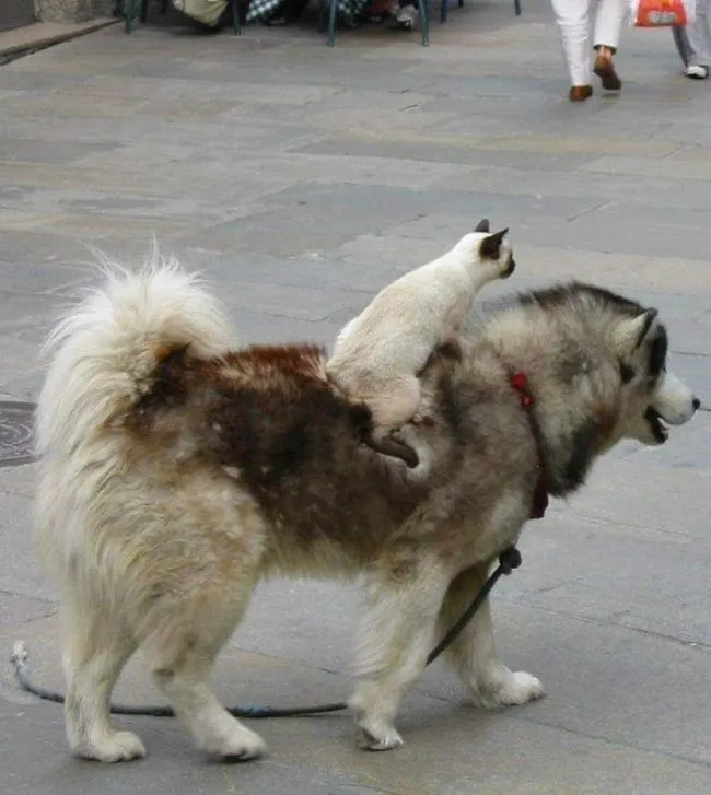 6 ไม่มีอะไรผิดปกติในที่แห่งนี้ มันเป็นเพียงแค่แมวกำลังขี่สุนัขตัวหนึ่งเท่านั้นเอง