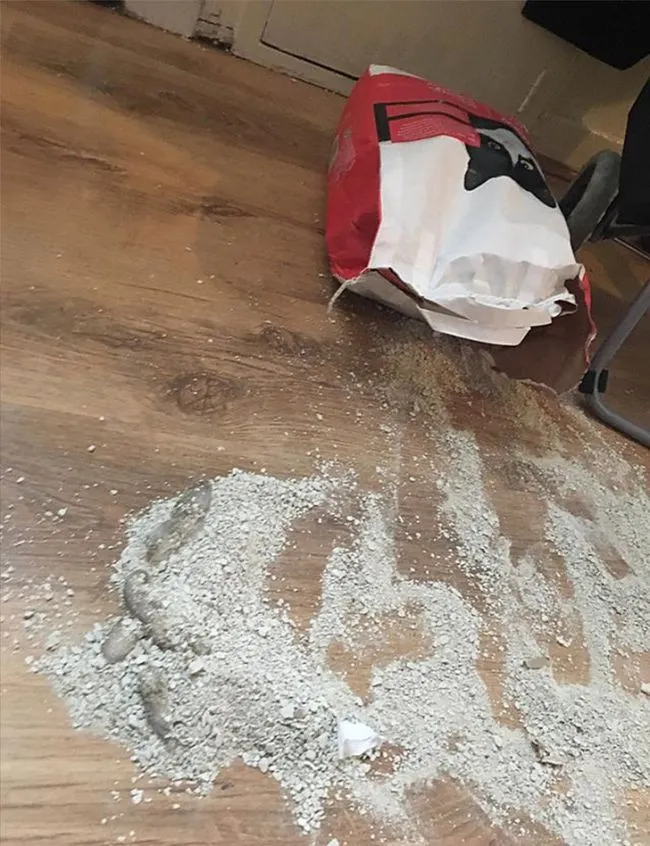 9 “ แมวของฉันไม่สามารถไปโถฉี่ของมันได้เพราะประตูห้องน้ำปิดทิ้งไว้หนึ่งคืน ดังนั้นเขาจึงแกะถุงทรายแล้วจัดการเอง … ”