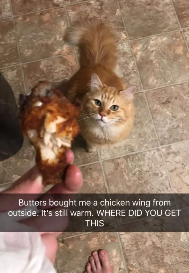 15 แมวของฉันเอาปีกไก่จากข้างนอกบ้านมาให้กับฉัน