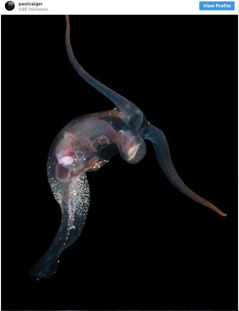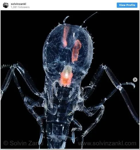 Amphipod Cystisoma Neptuni เป็นสิ่งมีชีวิต Amphipod จากทะเลน้ำลึกที่มีร่างกายโปร่งแสง ร่างกายที่พรางตัวปกป้องมันจากผู้ล่าและสามารถมองเห็นได้ใจากแฟลชของกล้อง