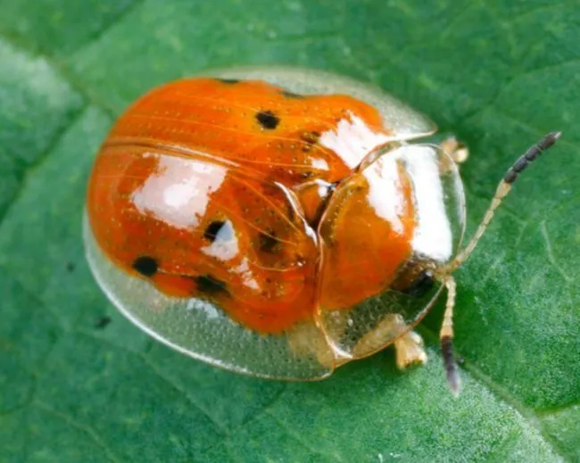 เต่าทองสีทองเป็นแมลงในตระกูลด้วงใบ Chrysomelidae มีถิ่นกำเนิดในอเมริกา มันดูสวยแต่ดูหลอกตาคือ Charidotella sexpunctata ที่รู้จักกันเป็นอย่างดี มันเป็นของครอบครัวด้วงใบ, Chrysomelidae สิ่งที่น่าสนใจคือสีของมันจะเปลี่ยนไปตามช่วงชีวิตที่แตกต่างกันเมื่อมันโตขึ้นในระหว่างผสมพันธุ์และอื่น ๆ เต่าทองวัยผู้ใหญ่จะเปลี่ยนจากทองคำเป็นแดงเมื่อพวกมันเครียด