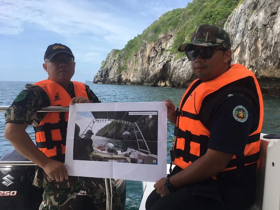 คณะพนักงานเจ้าหน้าทีได้ร่วมกันลงพื้นที่เพื่อตรวจสอบสถานที่นำมาเปรียบเทียบกับคลิปวีดีโอดังกล่าวโดยละเอียด ได้ปรากฏเห็นทิวทัศน์ มีลักษณะเป็นเกาะซึ่งแต่ละเกาะมีลักษณะที่เด่นชัดเป็นจุดเด่นเฉพาะตัว ซึ่งบริเวณสถานที่ที่กลุ่มบุคคล จำนวน ๗ คน โดยสารอยู่บนเรือสปีดโบ๊ท (speed boat) ร่วมกันตกปลาและชำแหละเนื้อปลาที่ได้มาจากล่า (ตกเบ็ด) นั้น อยู่ในบริเวณเกาะแรด เกาะกะโหลก เกาะหลักง่าม และเกาะละวะ ซึ่งทั้ง 4 เกาะอยู่ภายในเขตอุทยานแห่งชาติหมู่เกาะชุมพร