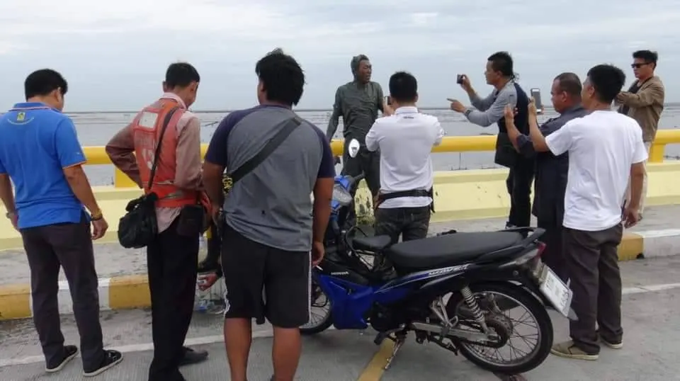 ฟังเจ้าตัว นายนพพร เล่าแล้วเข้าใจความรู้สึก บอกว่ามีอาชีพเป็นช่างเหล็ก ออกมาเดินเล่นบนสะพาน ทอดอารมณ์ หยิบตลับเมตร ออกดึงเล่นไปมา จู่ๆตลับเมตรหลุดมือตกลงไปในทะเล กระโดดตามลงไปเก็บไม่คิดว่าโคลนจะสูง
