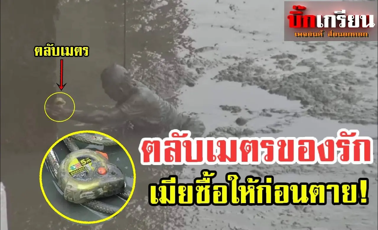 สาเหตุ ที่ต้องกระโดดลงไปแบบไม่คิดชีวิตเพื่องมหาตลับเมตร เพราะภรรยา เสียชีวิตไปแล้วเป็นคนซื้อให้ ก่อนตายเมีย ยังกำชับเก็บรักษาให้ดีๆ ถึงราคาจะแค่น้อยนิด แต่มีคุณค่าต่อจิตใจตนมาก โชคดีเป็นช่วงเวลาน้ำลง หากเป็นช่วงน้ำขึ้น คงจมน้ำตายไปแล้ว