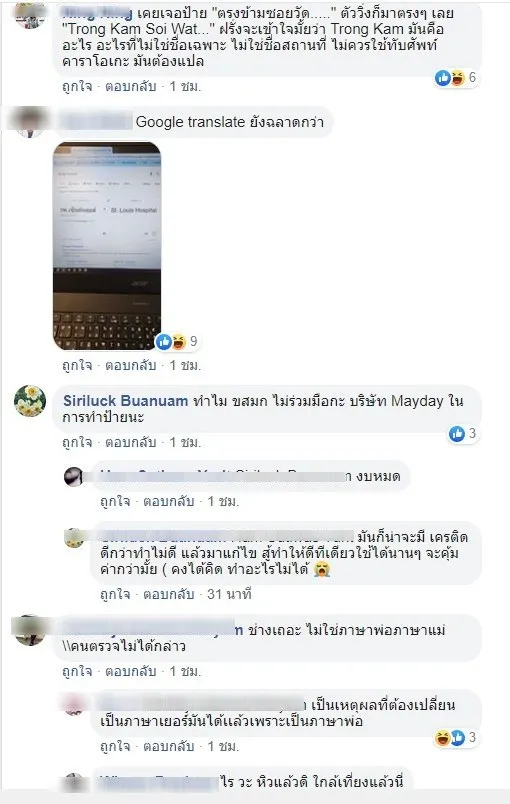 ซึ่งภาพดังกล่าวได้บอกว่า ป้ายหน้า รพ.เซ็นต์หลุยส์ และบอกภาษาอังกฤษว่า ropchut sen lui ทำเอางง ว่ามันคืออะไร? ทั้งนี้ชาวเน็ตเฉลยว่า ropchut คือ รบ+ จุด sen lui คือ Saint Louis นั่นเอง