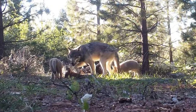 หมาป่าแม่ลูกเหล่านี้ถูกถ่ายไว้ในวิดีโอบนกล้องบันทึกภาพเมื่อวันที่ 18 มิถุนายนในพื้นที่ห่างไกลประมาณ 100 ไมล์จากชายแดนโอเรกอน หลังจากกำเนิดลูกหมาป่าสีเทาทั้งหมดในรัฐแคลิฟอร์เนียก็เติบโตขึ้น เป็นการยากที่จะคาดการณ์จำนวนที่แน่นอนขณะที่หมาป่าท่องไปหลายร้อยไมล์ในรัฐอื่นในขณะที่หมาป่าสองตัวในแคลิฟอร์เนียสวมปลอกคอวิทยุ