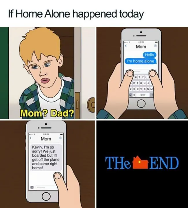 และล้อเลียนหากตัวละครเควินว่าหากเป็นปัจจุบันเขาคงแชทคุยกับแม่ของเขาว่าเขาไม่อยู่ แม่ของเขาคงลงมาจากเครื่องทันที