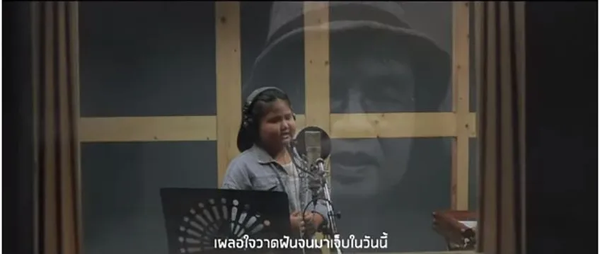 จนได้พามาปั้นให้ร้องในไทบ้าน เดอะ COVER เป็นนักร้องที่มีอายุน้อยที่สุด ซึ่งได้เลือกเพลงแรก ให้ตายไปกับใจ ของนักร้องลูกทุ่งสาว ต่าย อรทัย มา COVER จนตอนนี้ ยอดคนดูพุ่งไปถึงแปดล้านกว่าวิวแล้ว