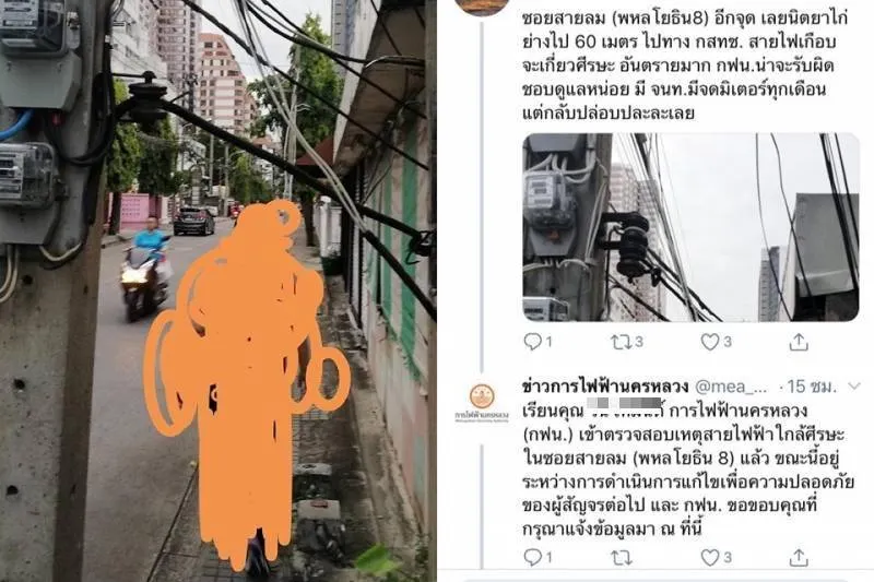 ทั้งนี้ก็มีชาวเน็ตจำนวนมากได้เข้ามาให้ข้อมูล อาทิ ซอยสายลม (พหลโยธิน8) เดินเข้าไปในซอยนิตยาไก่ย่างไป 60 เมตร ไปทาง กสทช. สายไฟเกือบจะเกี่ยวศีรษะ อันตรายมาก กฟน. น่าจะรับผิดชอบดูแลหน่อย มีเจ้าหน้าที่จดมิเตอร์ทุกเดือน แต่กลับปล่อยปละละเลย อย่างไรก็ตาม การไฟฟ้านครหลวง (กฟน.) ได้เข้ามาคอมเมนต์ว่า ได้ลงพื้นที่ตรวจสอบเหตุสายไฟฟ้าใกล้ศีรษะในซอยสายลม (พหลโยธิน 8) แล้ว ขณะนี้อยู่ระหว่างการดำเนินการแก้ไขเพื่อความปลอดภัยของผู้สัญจรต่อไป และ กฟน. ขอขอบคุณที่กรุณาแจ้งข้อมูลมา ณ ที่นี้