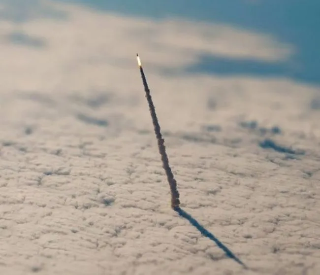 8 กระสวยอวกาศกำลังเดินทางออกจากชั้นบรรยากาศของโลก