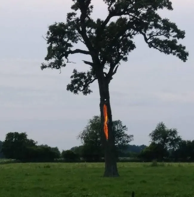 17 ต้นไม้ต้นนี้ถูกฟ้าผ่า เมื่อ 3 ชั่วโมงก่อนที่จะถ่ายภาพ ภาพนี้