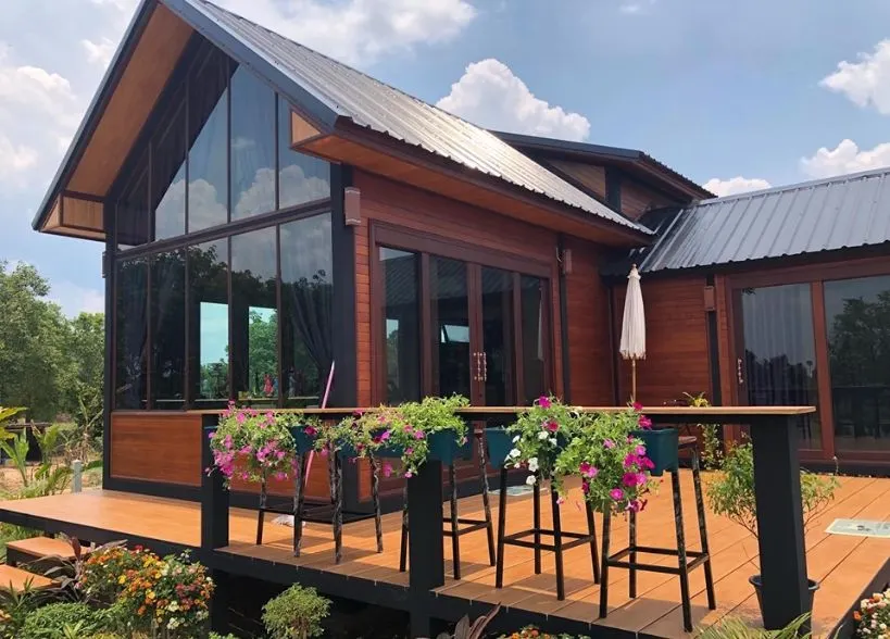 บ้านที่ตะเกียงจะพาไปชมในวันนี้ เป็นบ้านไม้ชั้นครึ่งสไตล์ nordic ซึ่งเป็นบ้านน๊อคดาวน์โครงเหล็ก TINY HOME โดยมีขนาด 1ห้องนอน 1ห้องน้ำ 2ห้องรับแขก และอีก 1ห้องครัว และมีระเบียงชั้นล่าง พร้อมด้วยระเบียงด้านหน้าที่สวยงาม ซึ่งบ้านสวยๆหลังตั้งอยู่ที่ อำเภอขุนหาญ จังหวัดศรีสะเกษ โดยเป็นของคุณเบียร์ ที่ได้ออกแบบและตกตแต่งบ้านสวยหลังนี้ให้เป็นร้านกาแฟขนาดใหญ่ สไตล์ร้านกาแฟบ้านไม้ชายทุ่ง พร้อมแล้วไปชมบ้านสวยๆกับตะเกียงกันเลยครับ