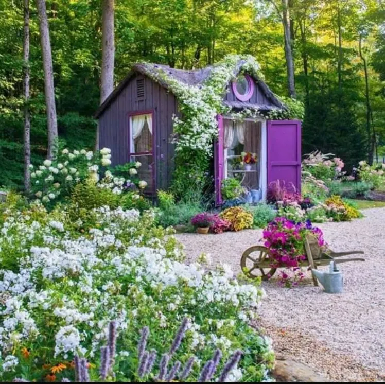 บ้านไม้หลังเล็ก โทนสีม่วงสวยงาม อาจเป็นบ้านในฝันของใครหลายคน ต้นไม้น้อยใหญ่ประกอบกัน ร่มรื่นยิ่งนัก ผู้เขียนเห็นแล้วรู้สึกชอบมาก เหมาะกับการพักผ่อนอย่างยิ่ง ได้แบบนี้จะไม่ยอมออกไปไหนเลย
