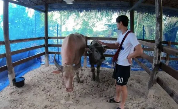 ซึ่งต้นเหตุที่ทำให้เจ้าตัวตัดสินใจซื้อควายเป็นเพราะพี่ที่สนิทด้วยนั้นเลี้ยงควาย พอตัวเองได้ไปเห็นก็รู้สึกว่าควายน่ารักดี ส่วนเรื่องราคานั้นทางภรรยาและคุณแม่ก็ทราบด้วย ราคาหลายคนอาจจะมองว่าพอ ๆ กับรถหรู แต่รถมันออกลูกไม่ได้ ควายมันออกลูกได้ ซึ่งทุกปีก็มีมีลูกทุกปี โดยเจ้าควายเผือกตัวนี้ มีชื่อว่า อั่งเปา อายุประมาณ3ปี แถมยังเป็นควายพันธ์ดีตัวสูงใหญ่ ลำตัวยาว ตามฉบับของแม่ควายที่จะนำมาพัฒนาในด้านอนุรักษ์ต่อไป