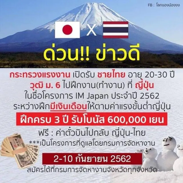 รีบเลย กระทรวง แรงงาน รับสมัคร คนไทย วุฒิ ม.6 ไปทำงาน ที่ญี่ปุ่น ไม่มี ค่าใช่จ่าย