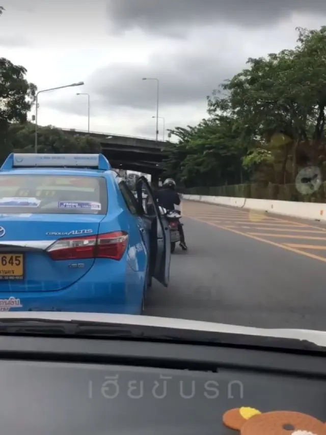แท็กซี่เปิดประตูออกมาวิ่งเข้าใส่ จยย. นึกว่ามีเรื่อง