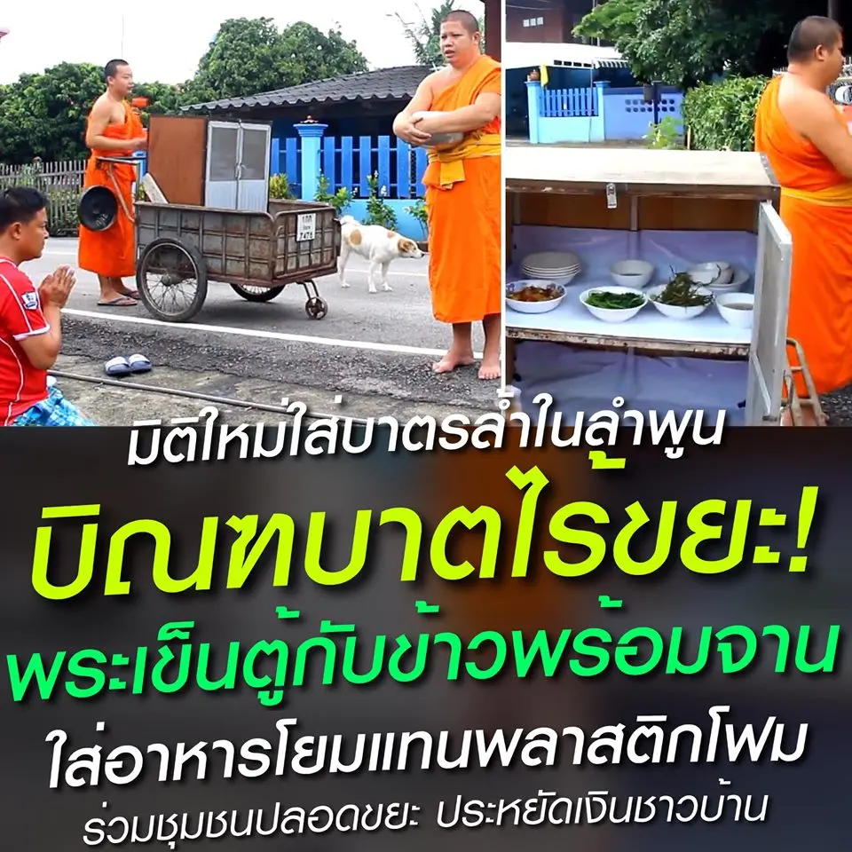 มิติใหม่ใส่บาตรขยะ "#บิณฑบาตซีโร่เวสต์" พระเข็นตู่กับข้าวพร้อมจาน ใส่อาหารโยมแทนพลาสติกโฟม ร่วมชุมชนปลอดขยะ