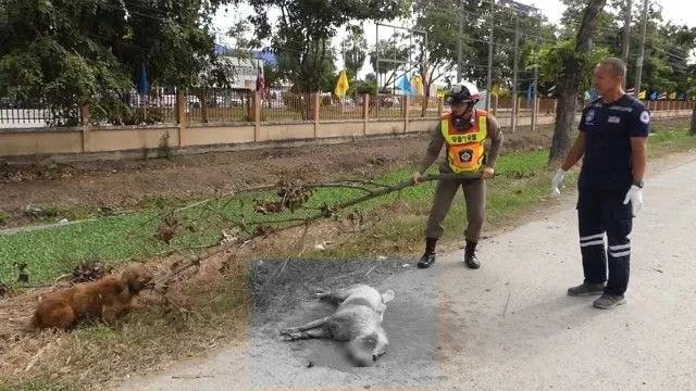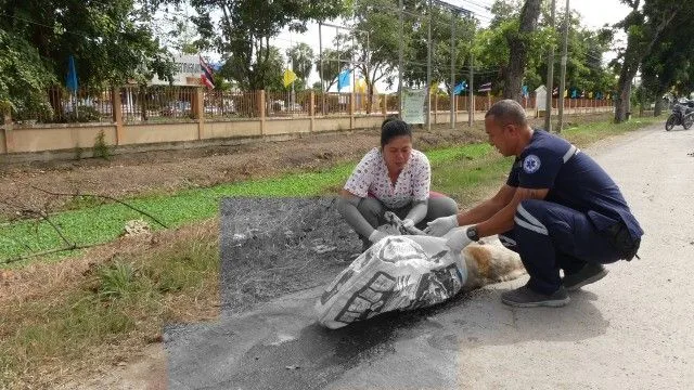 ด้านนายศิโรจน์ กมลพรวัฒนา อาสาเวหาปทุม กล่าวว่า ได้รับแจ้งจากประชาชนว่ามีสุนัขถูกรถชน ให้มาช่วยเอาสุนัขไปฝัง เมื่อตนจะเอาซากไปฝัง สุนัขเพศผู้ก็เข้ามาขู่ไม่ให้เข้ามาจับ โดยใช้เวลาเกือบ 2 ชม. กว่าจะไล่สุนัขเพศผู้ได้ แล้วนำศพสุนัขเพศเมียใส่กระสอบเพื่อนำไปฝังต่อไป.ฃ
