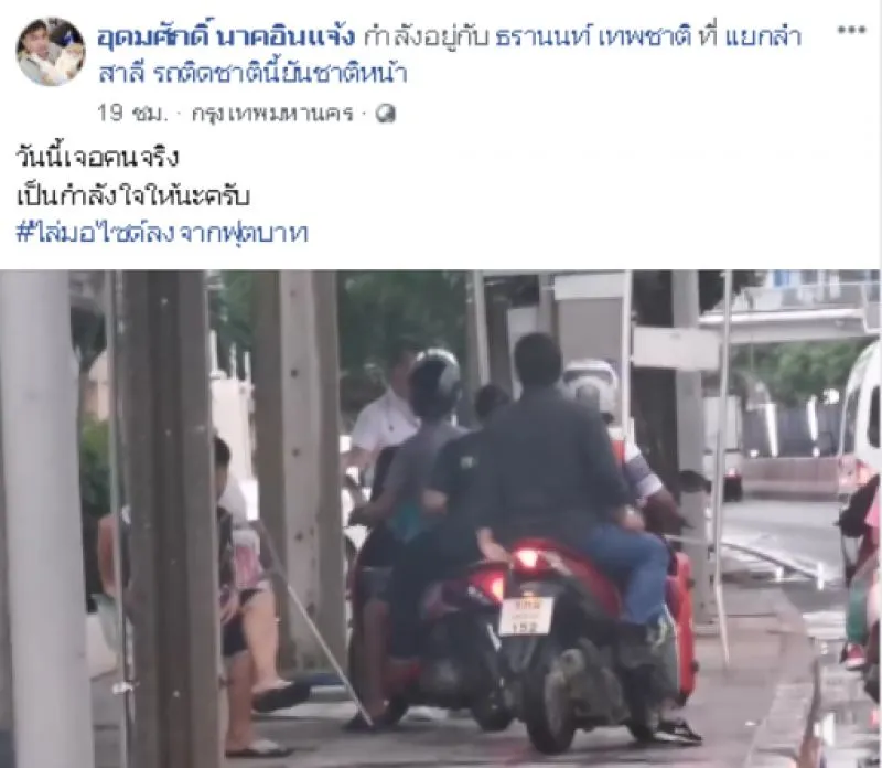 เรียกได้ว่าเป็นความมักง่ายเลยก็ว่า สำหรับพวกชอบขี่รถจักยายนต์บนฟุตบาท หรือทางเท้า จนคนเอือมระอากันไปหมด ล่าสุด เพจผู้ใช้เฟซบุ๊กชื่อ อุดมศักดิ์ นาคอินแจ้ง ได้โพสต์คลิปวีดิโอ ขณะรถมอไซค์ ขี่บนฟุตบาท แต่มีน้องนักศึกษายืนขวางไม่ให้ผ่าน แถมโดนบีบแตรไล่ น้องบอกนี่ไม่ใช่ถนน แล้วชี้ไปที่ถนน ว่านู้นถนน แล้วน้องก็หยิบโทรศัพท์ขึ้นมาเพื่อจะถ่ายรูปส่งให้ตำรวจเลยนะ แล้วมอไซค์ ก็ยอมลงไปวิ่งบนถนน แต่โดยดี ผู้โพสต์ได้ระบุข้อความว่า วันนี้เจอคนจริง เป็นกำลังใจให้นะครับ ไล่มอไซด์ลงจากฟุตบาท