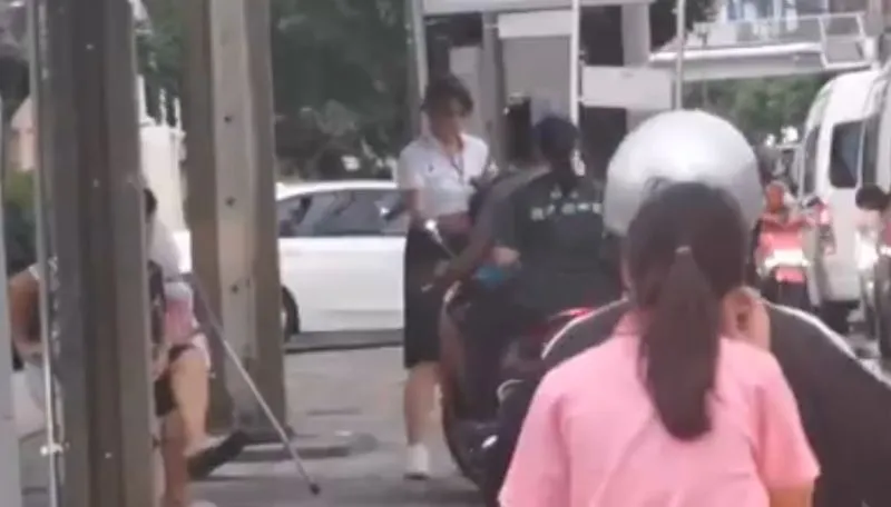 น้องนักศึกษาคนจริง ยืนไล่มอไซค์วิ่งบนทางเท้า เงิบเลี้ยวกลับแทบไม่ทัน