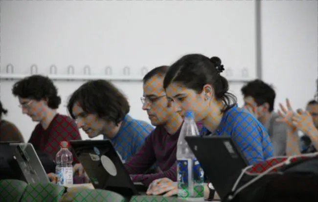 ภาพนี้ “ ทำให้เกิดความสับสน” ในหัวของชาวเน็ตเพราะมันดูเหมือนภาพถ่ายสี แต่จริงๆแล้วไม่ใช่ ผู้สร้างได้ทำเอฟเฟกต์นี้ด้วยการใช้ตาข่ายที่มีเส้นสีบนตัวของผู้คน และนี่คือเคล็ดลับในการ“ ระบายสี” รูปภาพ