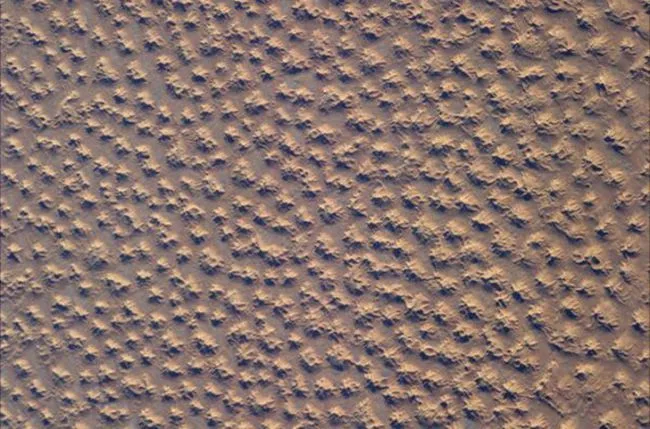 ภาพถ่ายนี้เผยแพร่โดย Luca Parmitano ในบัญชี Twitter ของเขา ชายคนนั้นเขียนว่าเขาถ่ายภาพเนินทรายจากด้านบน อย่างไรก็ตามผู้ติดตามของเขาเริ่มงงงวยเพราะดูเหมือนว่าภาพจะเป็นหลุมทรายไม่ใช่เนินทราย นั่นคือผู้ใช้คนหนึ่งพยายามลองกลับภาพดู