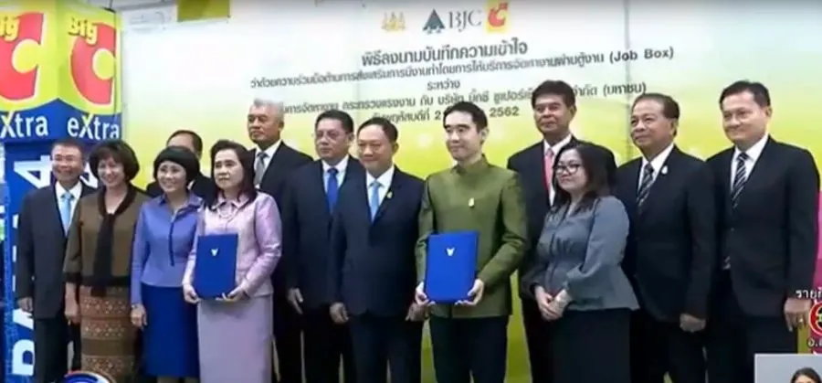 ล่าสุดวันนี้ 22 ส.ค.62 พล.ต.อ.อดุลย์ แสงสิงแก้ว รัฐมนตรีว่าการกระทรวงแรงงาน เป็นประธานในพิธีลงนาม"บันทึกความเข้าใจว่าด้วยความร่วมมือด้านการส่งเสริมการมีงานทำโดยการให้บริการจัดหางานผ่านตู้งาน หรือ Job Box"ระหว่าง อธิบดีกรมการจัดหางาน กับ ประธานเจ้าหน้าที่บริหารและกรรมการผู้จัดการใหญ่ บริษัทบิ๊กซี ซูเปอร์เซ็นเตอร์ จำกัด (มหาชน)
