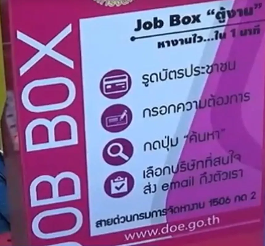 กรมการจัดหางาน จับมือ ห้างบิ๊กซี ลงนาม MOU ให้บริการจัดหางานผ่านตู้งาน หรือ Job Box เพิ่มโอกาสเข้าถึงแหล่งงานอย่างเท่าเทียม เพียงใช้บัตรประชาชนแบบ Smart Card ใบเดียวเท่านั้นสามารถเลือกตำแหน่งงานที่สนใจและไปสมัครงานกับนายจ้างได้ทันที