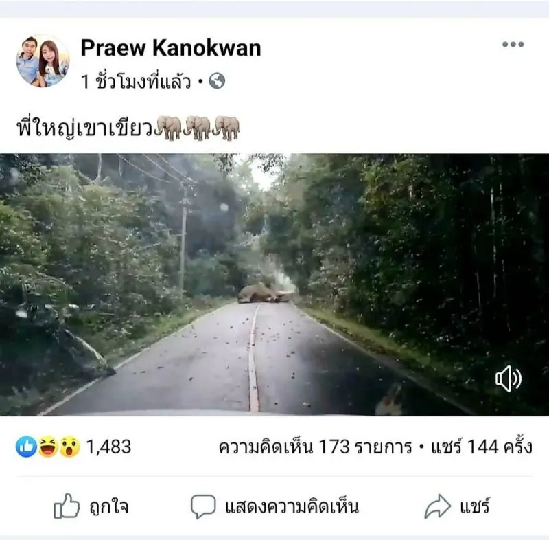 เมื่อวันที่ 22 ส.ค.62 มีผู้ใช้เฟสบุ๊คชื่อ Praew Kanokwan ได้โพสต์ภาพช้างขนาดใหญ่ นอนขวางกลางถนน โดยระบุว่า พี่ใหญ่เขาเขียว ลงในโลกโซเซียลและมีการแท็คไปยังกลุ่มเพจจุดกางเต้น ซึ่งในภาพเป็นการขับรถยนต์ไปตามเส้นทางขึ้นเขาเขียว ซึ่งอยู่ในเขตอุทยานแห่งชาติเขาใหญ่