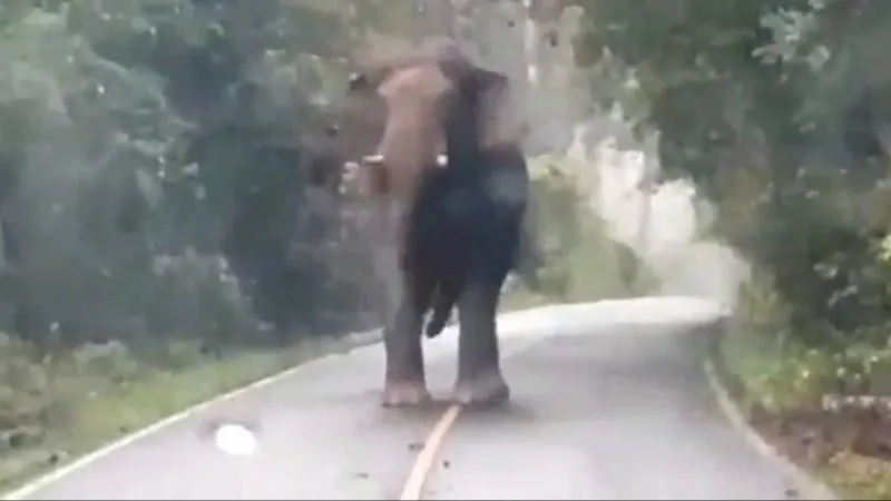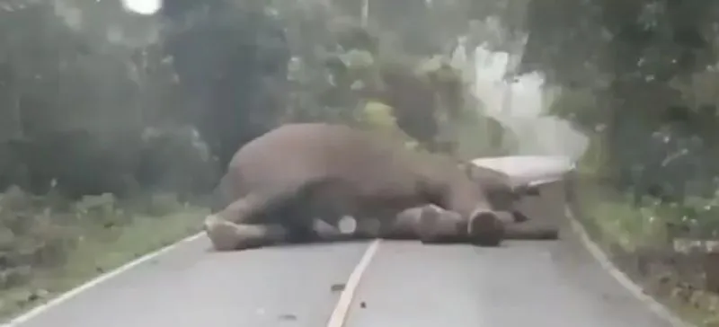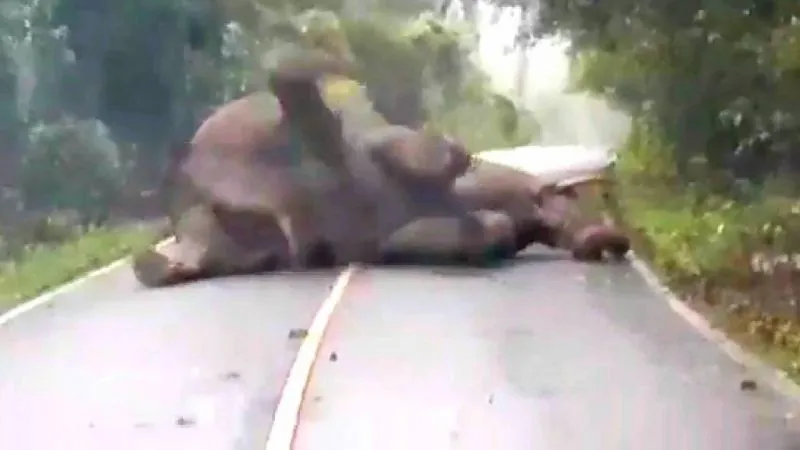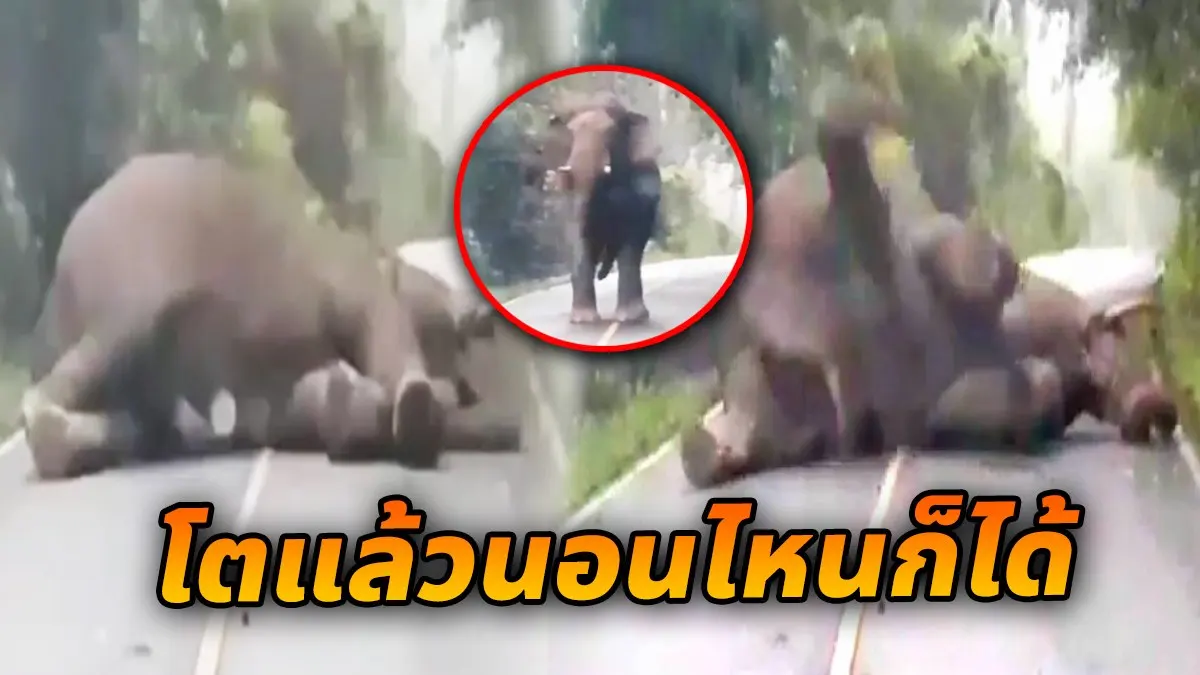 จากนั้นคนขับพูดขึ้นว่า ขวางกลางถนนเลยครับนอน โอ้ยลูกจะขึ้นเขาไปทำงาน แล้วเมื่อไหร่จะตื่น แล้วเมื่อไหร่จะลุกเนี่ย แกล้งกันหรือเปล่า นอนขวางเต็มถนนเลย ช่วยลุกหน่อย ช่วยลุกหน่อย จะขึ้นทำงาน ต่อมาอีกไม่นานเจ้าช้างตัวดังกล่าว ก็ได้ลุกขึ้นอย่างรวดเร็ว และหันหน้ามาทางรถของเจ้าของคลิป แต่ไม่มีท่าทีใดๆ ก่อนที่คลิปจะตัดหายไป