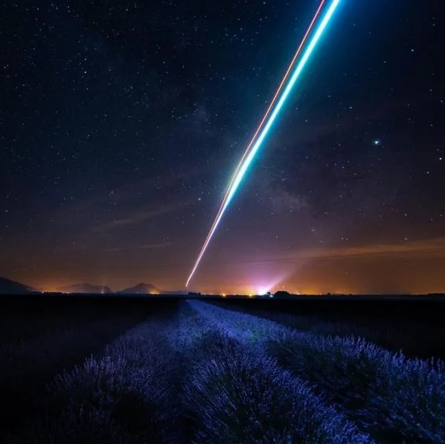 8 “ ฉันใช้โดรนบินเหนือทุ่งแห่งนี้ในตอนกลางคืน โดยมีห้อยโคมไฟเอาไว้ เพื่อให้แสงแก่ลาเวนเดอร์ขณะที่ฉันถ่ายรูปด้วยกล้องของฉัน”