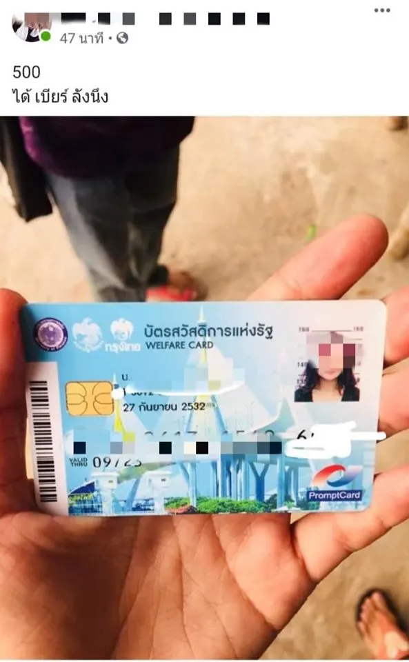 สาวโพสต์อวดบัตรสวัสดิการแห่งรัฐ ลั่น 500 ได้เบียร์ลังนึง แถมโชว์สร้อยทองหรา