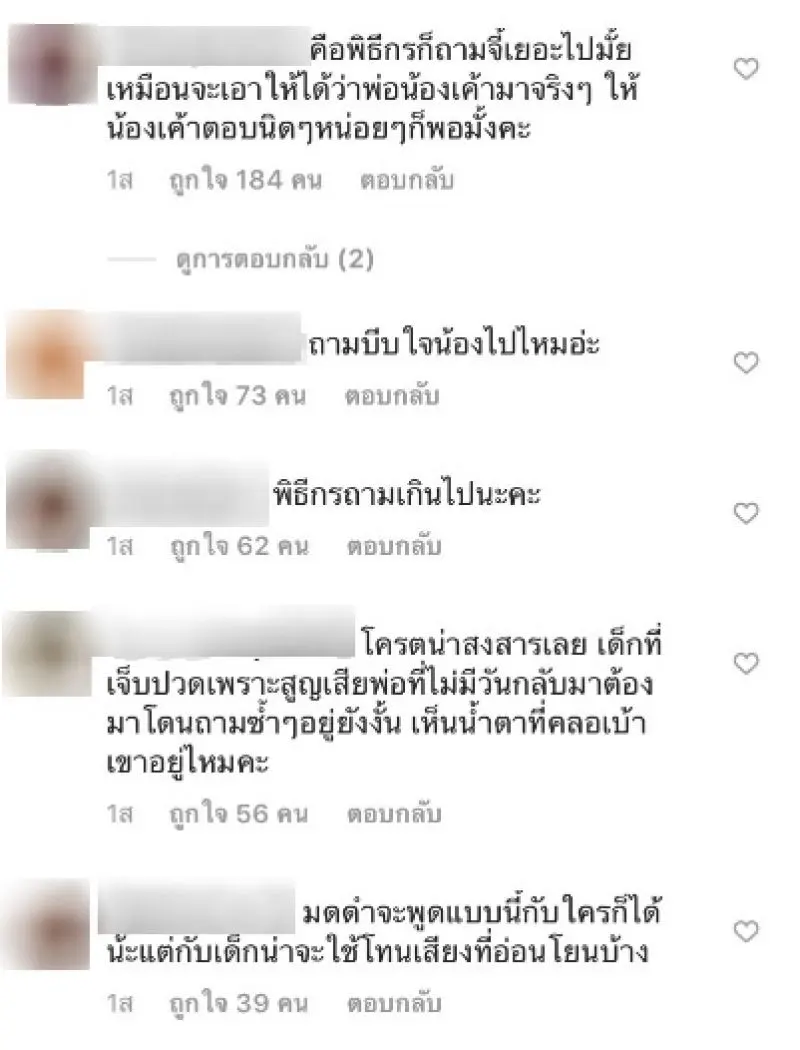 ล่าสุดดูเหมือนว่าเมื่อคลิปได้เผยแพร่ออกไปทางด้านพิธีกรอย่าง มดดำ คชาภา จะโดนกระแสต่อว่าอย่างมากมายหลังจี้ถาม น้องมะลิ เรื่อง พ่อปอ โดยได้มีชาวเน็ตจำนวนมากเข้ามาคอมเมนต์ต่อว่าเช่น พิธีกรถามเกินไปนะคะ ถามบีบใจน้องไปไหมอะ พิธีกรถามจี้เยอะไปไหมเหมือนจะเอาให้ได้ว่าพ่อน้องเค้ามาจริงๆ ให้น้องเค้าตอบนิดๆหน่อยๆก็พอมั้งคะ