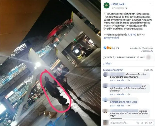 ต่อมามีผู้ใช้เฟสบุ๊คชื่อ JS100 Radio ได้ออกมาโพสต์อีก พร้อมได้ระบุข้อความว่า เตือนภัย ระวังโดนหลอกขอเงินกลับบ้านชลบุรี 80 บาท เราโดนมาแล้วและให้ไปด้วย 50 บาท พูดดูน่าไว้ใจ แต่เราเอะใจ เลยเดินตามต่อ ขอได้ไปอีกสามคน เราเลยวิ่งไปถามพี่คนล่าสุดว่าให้ไปมั้ย พี่เขาให้ไปสองร้อย อาจเป็นมิจฉาชีพ พบที่สยาม ลานหน้ามาบุญครอง