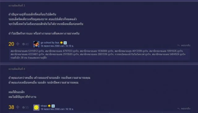 ความคิดเห็นจากสมาชิกผู้ใช้พันทิป