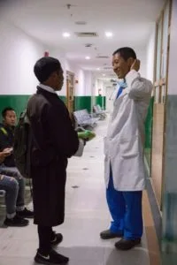 ไม่มีใครที่โรงพยาบาลมีสีหน้าประหลาดใจ ขณะนายกฯ เชอร์ริง สวมชุดกาวน์เดินไปตามระเบียงที่วุ่นวาย ทุกคนทำงานกันตามปกติ เหมือนผมเป็นแค่หมออีกคน