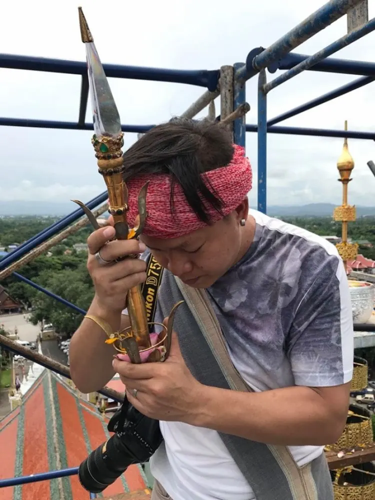 เป็นบุญตา หนุ่มโพสต์ อัญเชิญ ปลายยอดฉัตรองค์พระธาตุหริภุญชัย ลงมาเพื่อบูรณะ