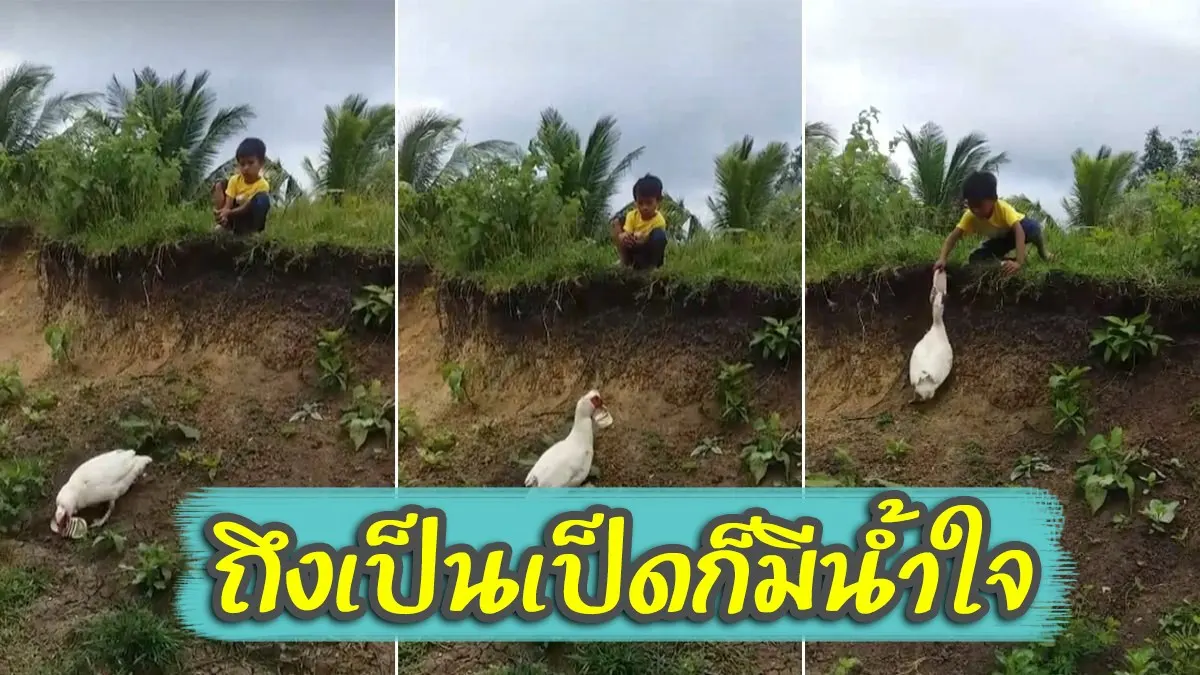 เป็ดน้ำใจงาม พยายามสุดฤิทธิ์ อาสาเก็บรองเท้า มาคืนหนูน้อย
